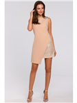 Značkové mini šaty asymetrické na večer K014 - Beige S
