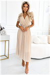 Ztělesněte nadčasovou eleganci v těchto nádherných večerních šatech ze šifonu s aplikací empire v pase, která lichotí každé postavě. Jeho plynulá silueta ladně přechází z pravidelného složeného živůtku k asymetrickému lemu a vytváří podmanivý tanec, který šeptá sofistikovaností. Tyto šaty jsou perfektní pro každou zvláštní příležitost.