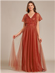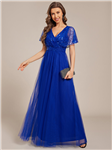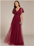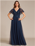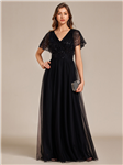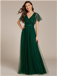 Společenské šaty s krátkým rukávem, volánky, flitry a výstřihem