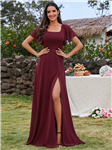 Šaty pro družičky s krátkými rukávy a odhalenými zády