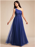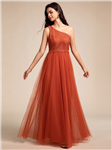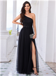 Objevte nezapomenutelné kouzlo v těchto nádherných tylových šatech na jedno rameno. Asymetrický design dodává nádech dramatičnosti, doplněný svůdným bočním rozparkem . Tvar A-line zvýrazněný jiskřivým krajkovými flitry. Tyto šaty, mistrovské dílo večerního outfitu, jistě upoutají každé oko.