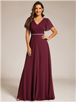 Elegantní šifonové šaty pro družičky s hlubokým výstřihem do V
