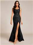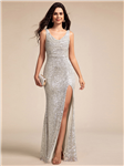 Maxi šaty s hlubokým výstřihem do V flitrové s rozparkem