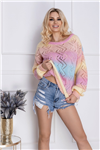 Chlupatý svetr pletený s ažurovými vzory 30059