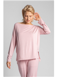 Halenka je vyrobena z příjemně omakané látky s jedinečným barevným potiskem. Jednoduchý tvar se silným, asymetrickým spodním povrchem. Kratší přední část a delší zadní část činí celý styl dynamičtějším a opticky prodlužuje siluetu. Model s půlkulatým výstřihem a rukávem po lokty.| Velikost v cm | S | M | L | XL |