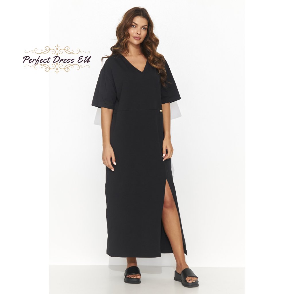 Bavlněné oversize maxi šaty s rozparkem NU466