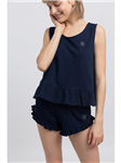 Šortky jsou vyrobeny z jemného materiálu a mají jemné volánky , které dodávají ženský šarm a lehkost. Jejich volný střih zajišťuje volnost pohybu a pohodlí.