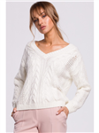 Volný prolamovaný svetr oversize s výstřihem 30076