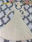 Tyto šaty jsou díky svému nadčasovému střihu absolutní „must have“. Vzhled dotváří rozšířená sukně po kolena a volně přiléhavý top s kravatovým páskem v pase.pletená bavlna