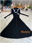 Pletené šaty s dlouhým rukávem a áčkovou sukní