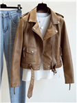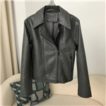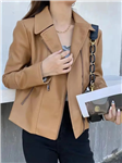 Krátká dámská koženková bunda ve vintage stylu s kapsami