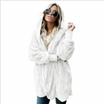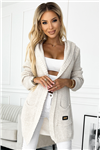 Cardigan - teplá pelerína s kapucí, kapsami a nášivkou. Vyrobeno ze silnějšího béžového svetrového materiálu. Značka Numoco. evropská produkce.