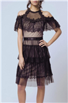 Černé midi šaty volánkové šaty tylové se síťovinou