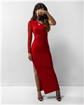 Značkové maxi šaty s jedním tylovým rukávem - Červené S