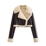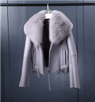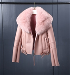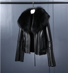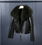 Krátká dámská koženková bunda s kožešinovým lemem z lišky