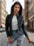 Dámská kožená bunda krátká ramones přechodná BARBADOS TY4549