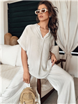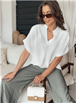 Klasická bavlněná halenka s výstřihem do V s druky 0163