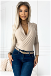 Halenka s V výstřihem a ohrnovacími manžetami M665