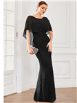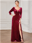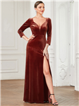 Večerní flitrové šaty s výstřihem do V a dlouhými rukávy