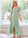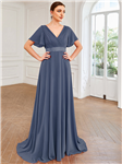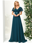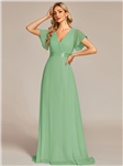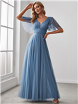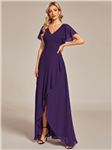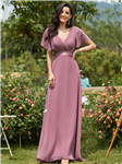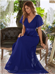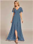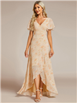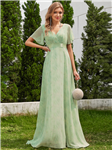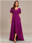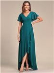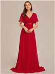 Volánkové večerní šaty s výstřihem do V a krátkými rukávy