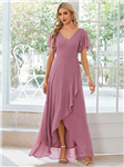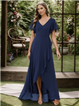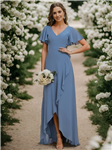 Šifonové šaty pro družičku s výstřihem a volánkem