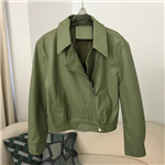 Krátká dámská koženková bunda ve vintage stylu s kapsami