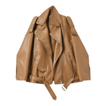 Krátká dámská koženková bunda s páskem a elegantním střihem