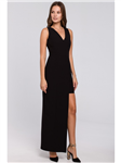 Dlouhé plesové šaty s výstřihem a rozparkem na noze