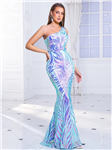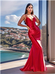 Dlouhé plesové šaty typu rybí ocas s volánovými rukávy
