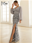 Dlouhé šifonové večerní šaty s dlouhým rukávem