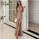 Večerní šaty s hlubokým výstřihem do V a rozparkem