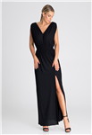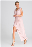 Maxi šaty s řasením a hlubokým rozparkem M880