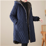 Dlouhý, prošívaný kabát s kapsami, zapínání na druky A541