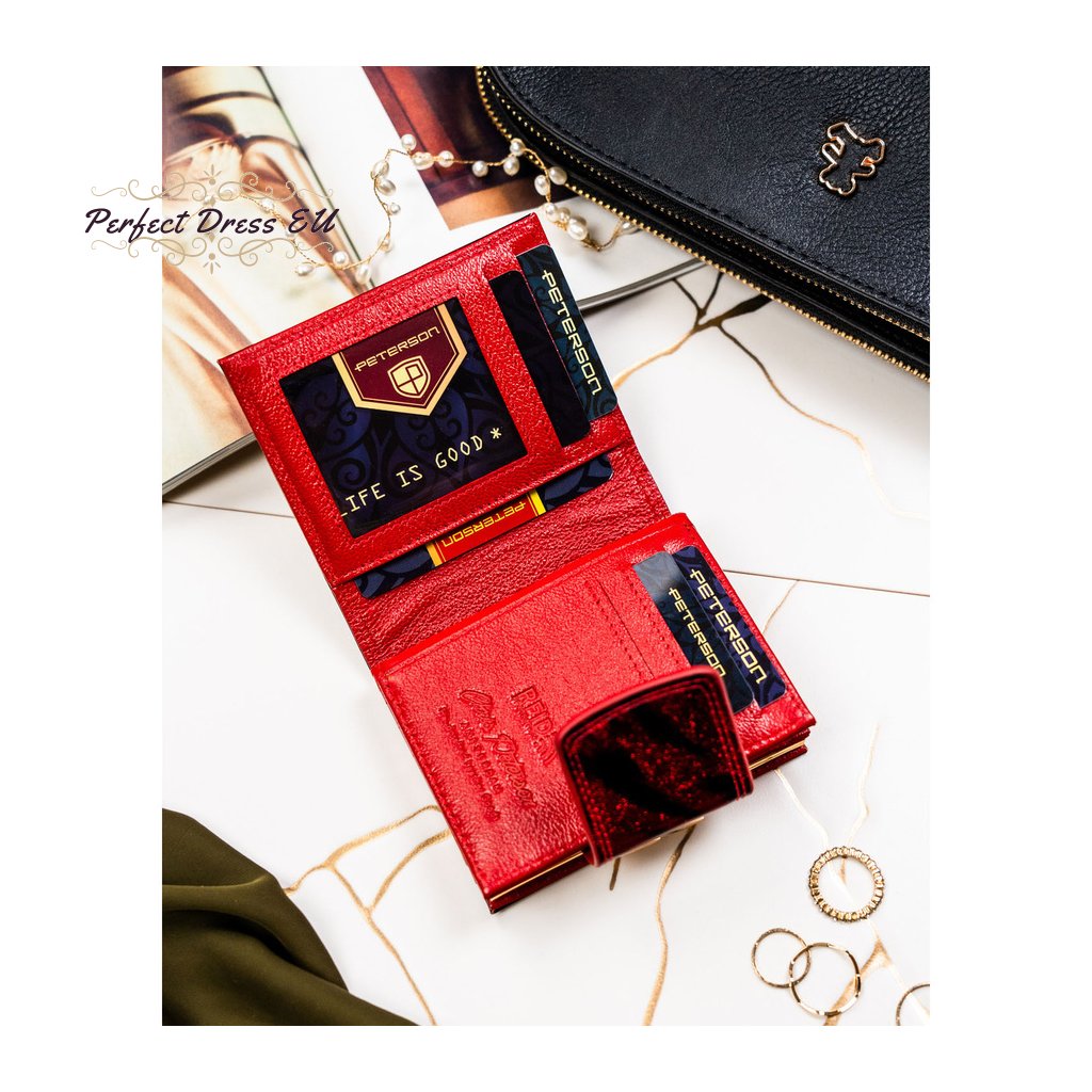 Dámská peněženka z červené lakované kůže s RFID - Peterson