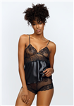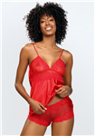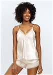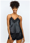 Saténový komplet top na ramínka s krajkou + šortky MONIC