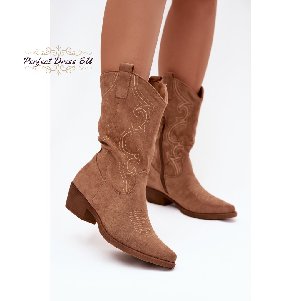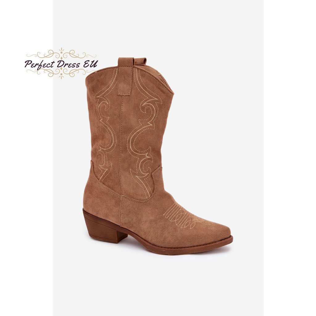 Dámské boty cowboyky vyrobené z měkkého eko semiše jsou ideálním spojením stylu a pohodlí. Model na nízkém, zúženém podpatku odkazuje na klasický westernový styl a špičaté nosy dodávají celku ženský charakter. Boty jsou vyhřívané obuvním látkou, což zajišťuje teplo a komfort v chladnější dny. Snadno se nazouvají s bočním zipem – zajišťují pohodlí při obouvání. Švy na svršku zdůrazňují jejich výjimečný styl. Ideální pro každodenní a podzimně-zimní stylizace, dobře ladí s džínami, šaty nebo sukněmi ve stylu boho. Při výběru velikosti se řiďte tabulkou velikostí.