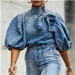 Dámská džínová bunda s dlouhým rukávem v ležérním vintage stylu