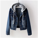 Dámská džínová bunda s kapucí a dlouhým rukávem