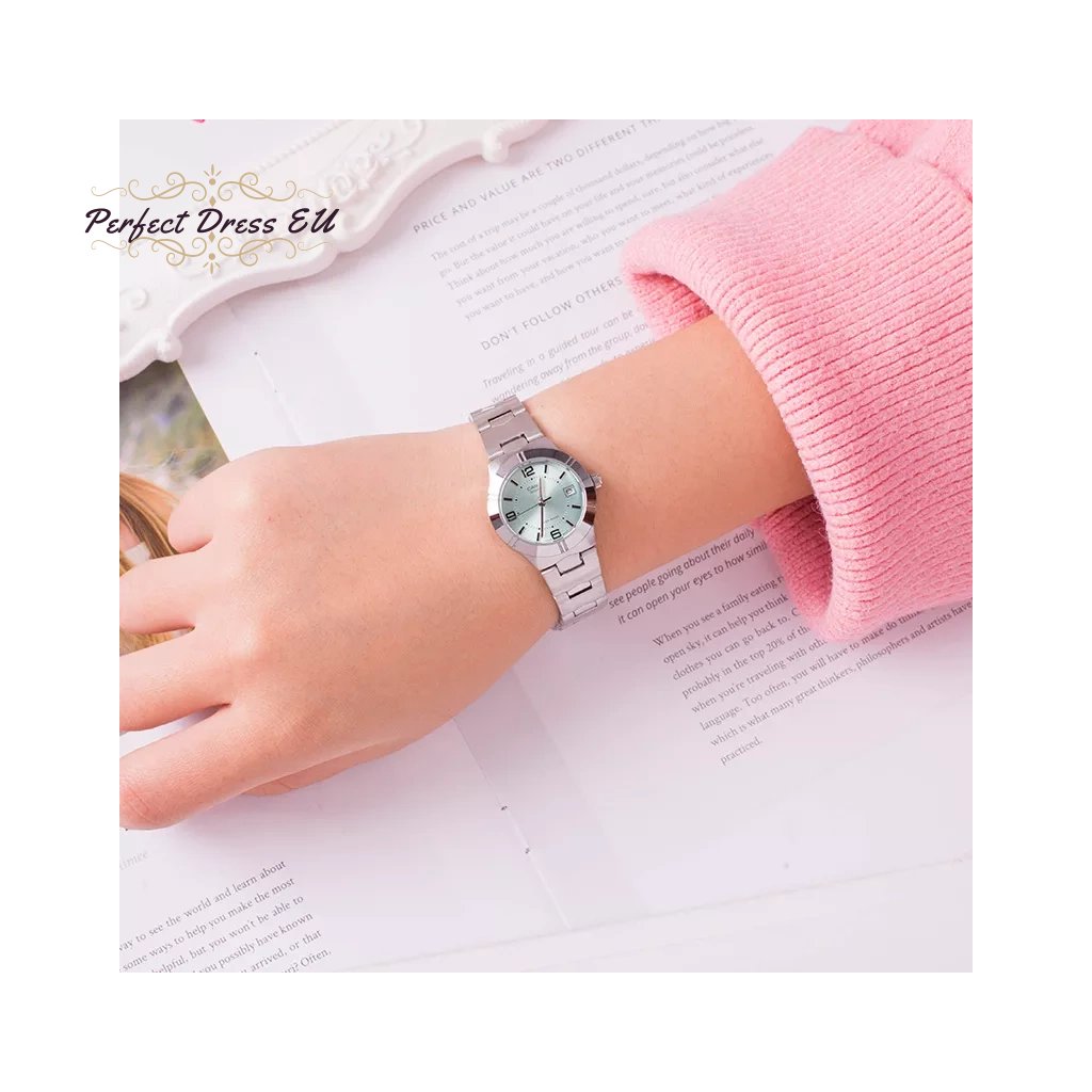 CASIO LTP-1241D-2A jsou elegantní dámské hodinky, které kombinují klasický design s moderními technologickými řešeními. Hodinky se vyznačují 25mm ocelovým pouzdrem, které jim dodává decentní, ale zároveň výrazný vzhled. Pouzdro je vyrobeno z vysoce kvalitní nerezové oceli, která zajišťuje odolnost a odolnost proti poškození. Hodinky mají modrý ciferník se stříbrnými indexy a ručičkami, což umožňuje pohodlné a přehledné odečítání času. Na ciferníku je také datumovka, která zobrazuje aktuální den v měsíci. Díky použití minerálního skla je ciferník odolný proti poškrábání, což zajišťuje dlouhotrvající estetiku hodinek. Náramek, rovněž vyrobený z nerezové oceli, má elegantní stříbrnou barvu, která dokonale ladí se zbytkem designu. Je pohodlný a snadno se přizpůsobí zápěstí, díky čemuž se hodinky pohodlně nosí každý den. CASIO LTP-1241D-2A jsou hodinky, které kombinují funkčnost s estetikou a nabízejí přesný quartzový mechanismus a elegantní vzhled. Jsou skvělou volbou pro ty, kteří hledají hodinky, které se budou hodit jak k běžnému, tak i k formálnějšímu stylu.