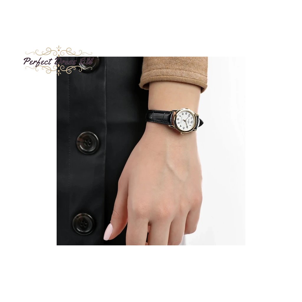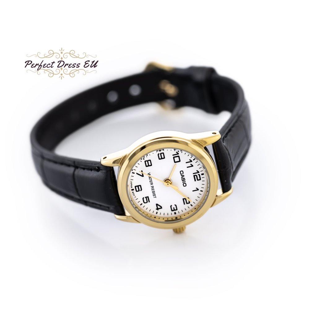 Černý kožený řemínek je perfektním doplňkem celku a nabízí celodenní pohodlí. Casio LTP-V001GL-7B pohánějí přesný quartzový strojek, který zajišťuje spolehlivé měření času.