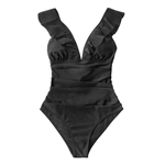 Dámské jednodílné plavky – plus size, výstřih do V, formující střih