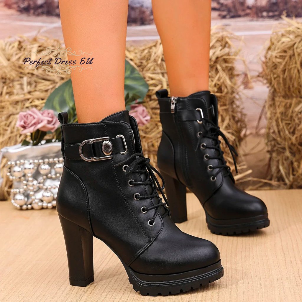 Dámské kotníkové boty na vysokém podpatku s přezkou