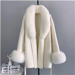Dlouhý pletený kardigan s pravou liščí kožešinou a volným střihem