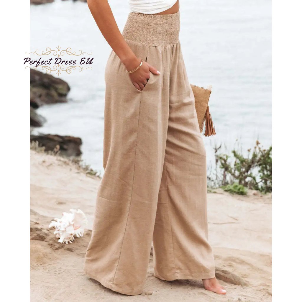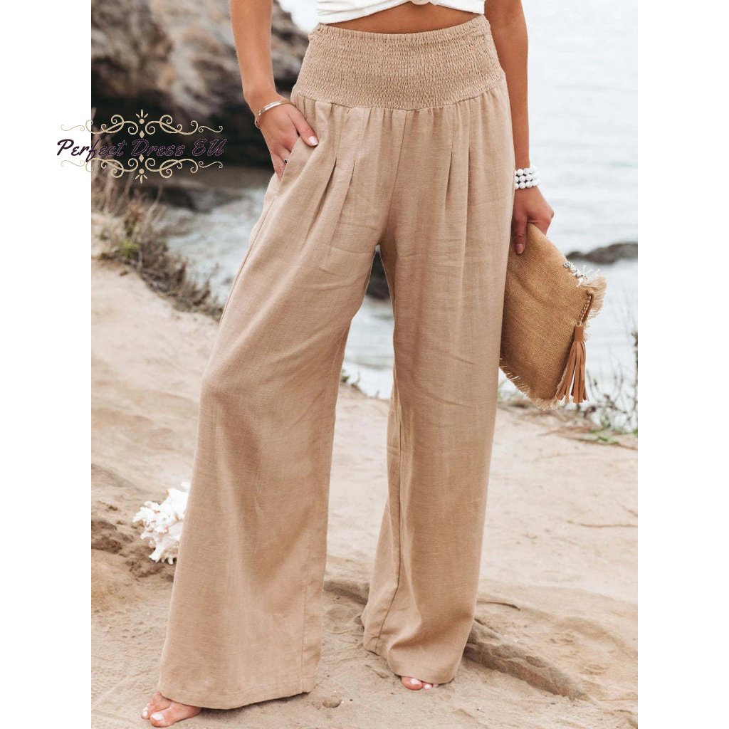 Stylové a pohodlné dámské kalhoty v přírodním béžovém odstínu jsou ideální volbou pro letní dny, dovolenou i volnočasové nošení. Díky širokým nohavicím a lehkému vzdušnému materiálu se příjemně nosí a krásně splývají. Elastický pas se smockovým zpracováním perfektně sedne a přizpůsobí se postavě, zároveň příjemně zvýrazní pas bez nepříjemného tlačení. Kalhoty lze snadno kombinovat s topy, košilemi i plážovou módou – skvělý kousek pro ležérní, boho i elegantní styl.