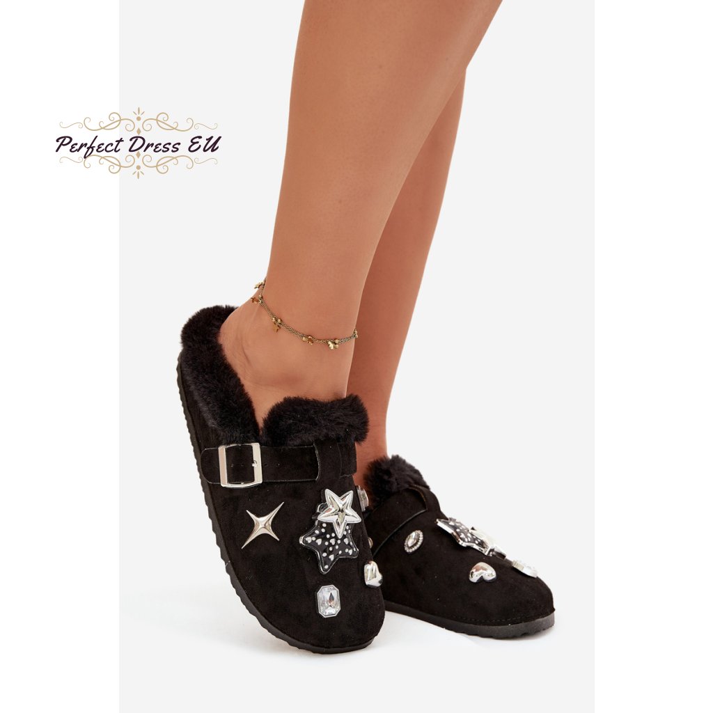 Dámské pantofle s ozdobami a sponou vyhřívané kožešinou Thalora