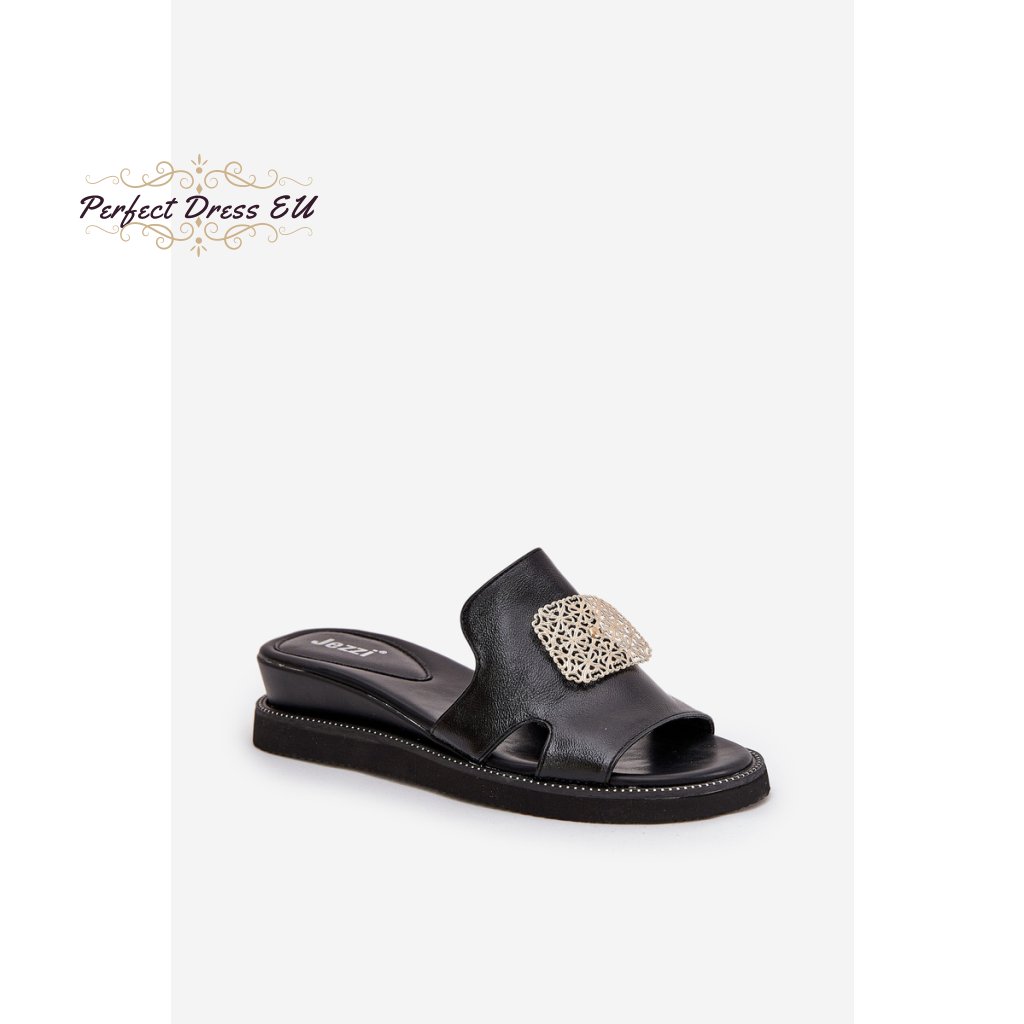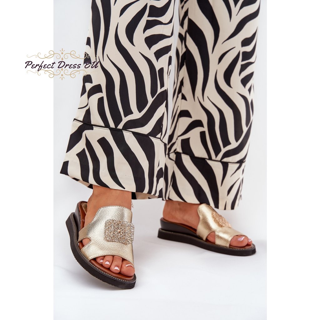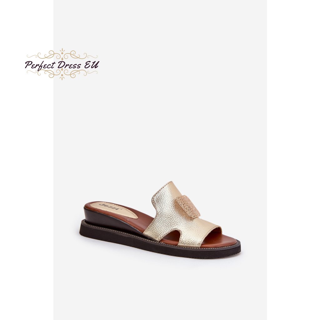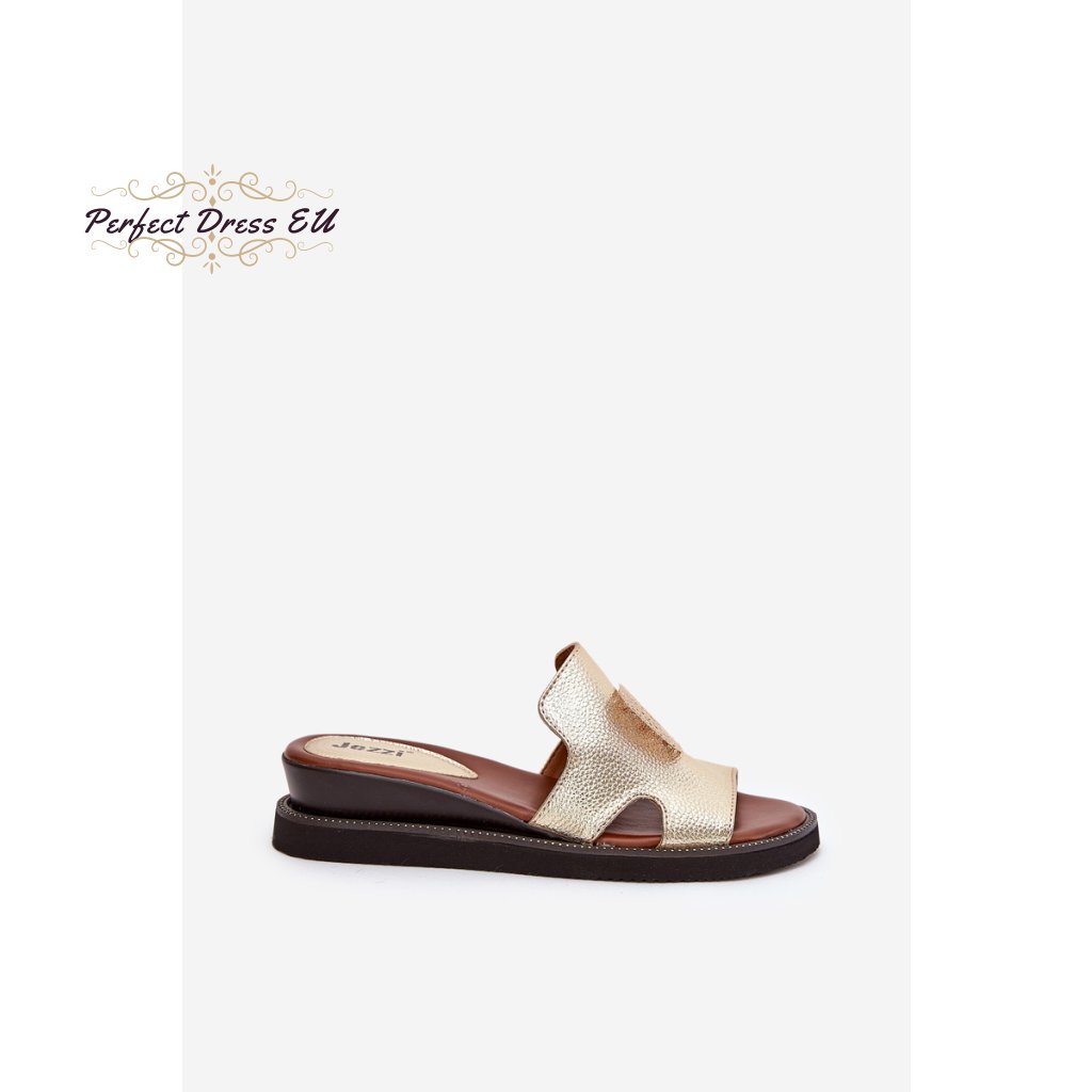 Dámské pantofle značky Jezzi vyrobené z eko kůže jsou ideální kombinací stylu a pohodlí. Zlatá ozdoba na přední části jim dodává eleganci a jemné kouzlo. Umístěné na platformě, tyto pantofle zaručují pohodlí a stabilitu při chůzi, zatímco měkká stélka zajišťuje komfort po celý den. Jejich lehká konstrukce je činí nesmírně pohodlnými, ideálními na letní dny, skvěle se hodí jak do každodenních stylizací, tak na elegantnější výlety. Při výběru velikosti se řiďte tabulkou velikostí.