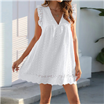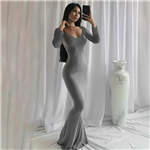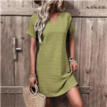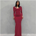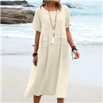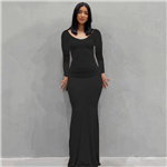 Bavlněné Maxi šaty s výstřihem do V a dlouhým rukávem