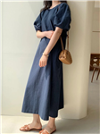Maxi bavlněné šaty s vázacím páskem MOE M435