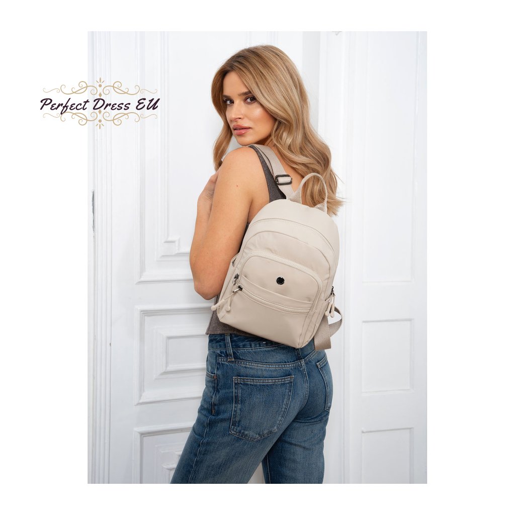 Batoh je vyroben z vysoce kvalitního polyesteru, je odolný vůči každodennímu používání a dlouho neztrácí svůj estetický vzhled. Snadno se čistí, neabsorbuje nečistoty a dobře odolává mírnému dešti. Jemná textura materiálu mu dodává elegantní charakter, který dokonale doplňuje městský styl. Pokud hledáte batoh, který vypadá skvěle a zároveň je praktický.