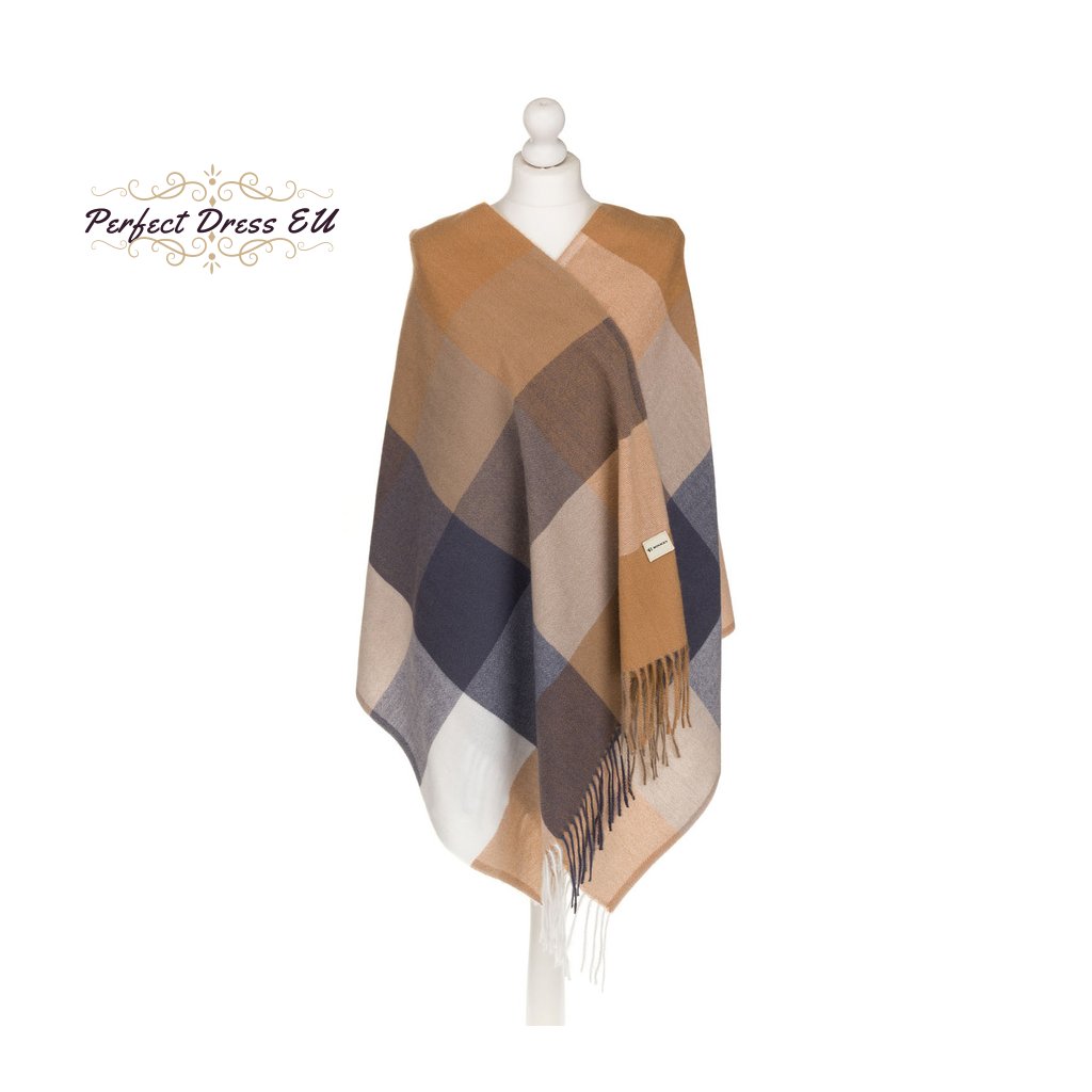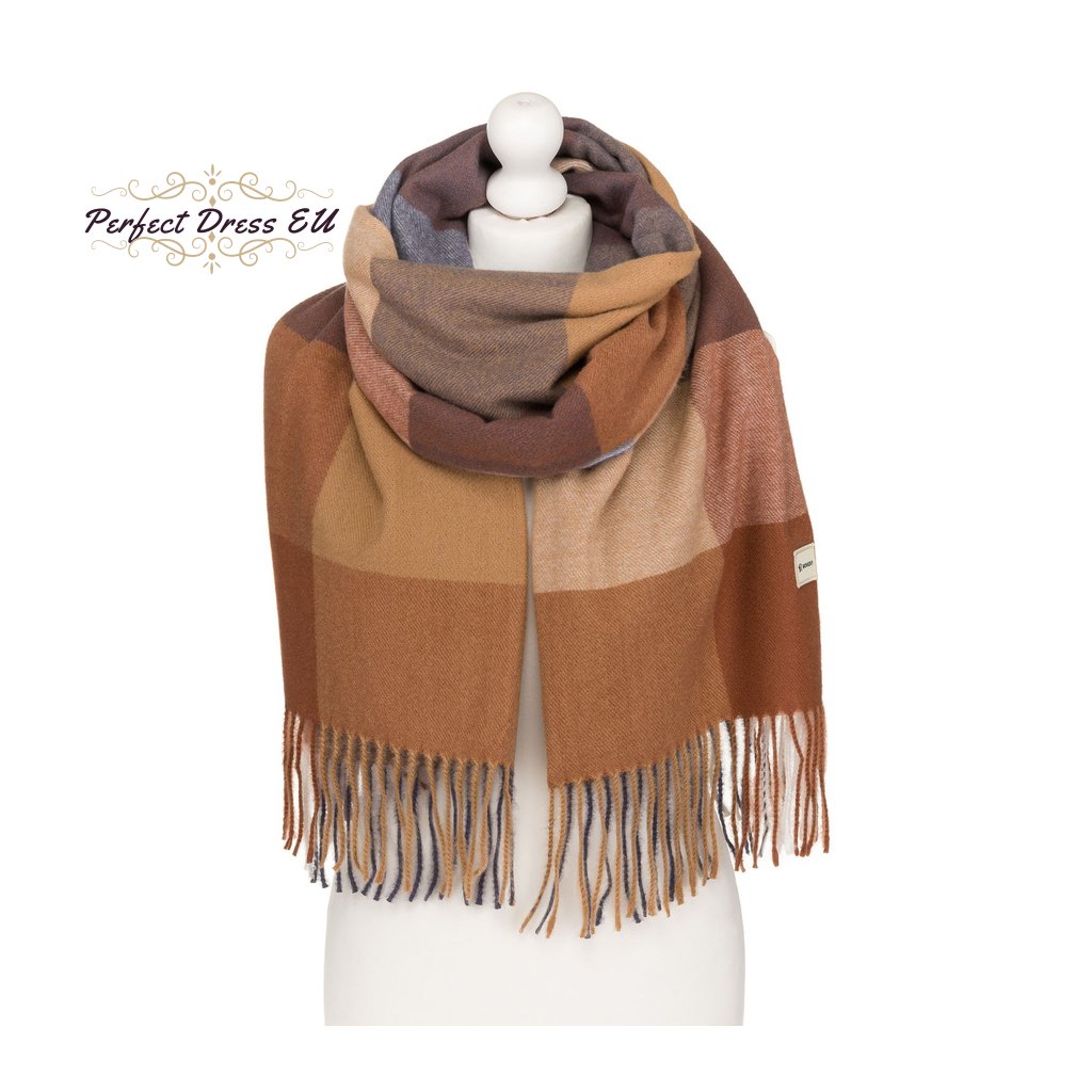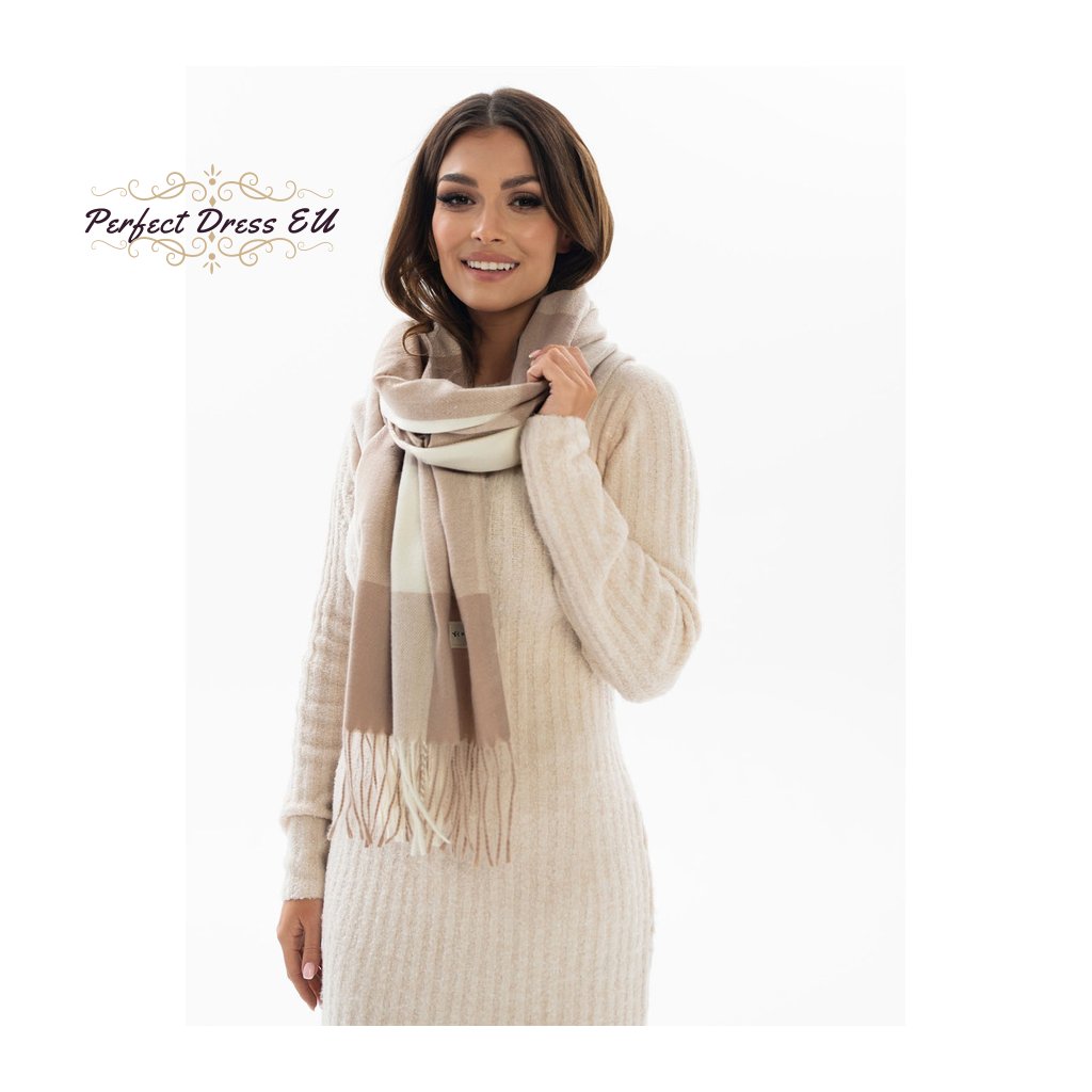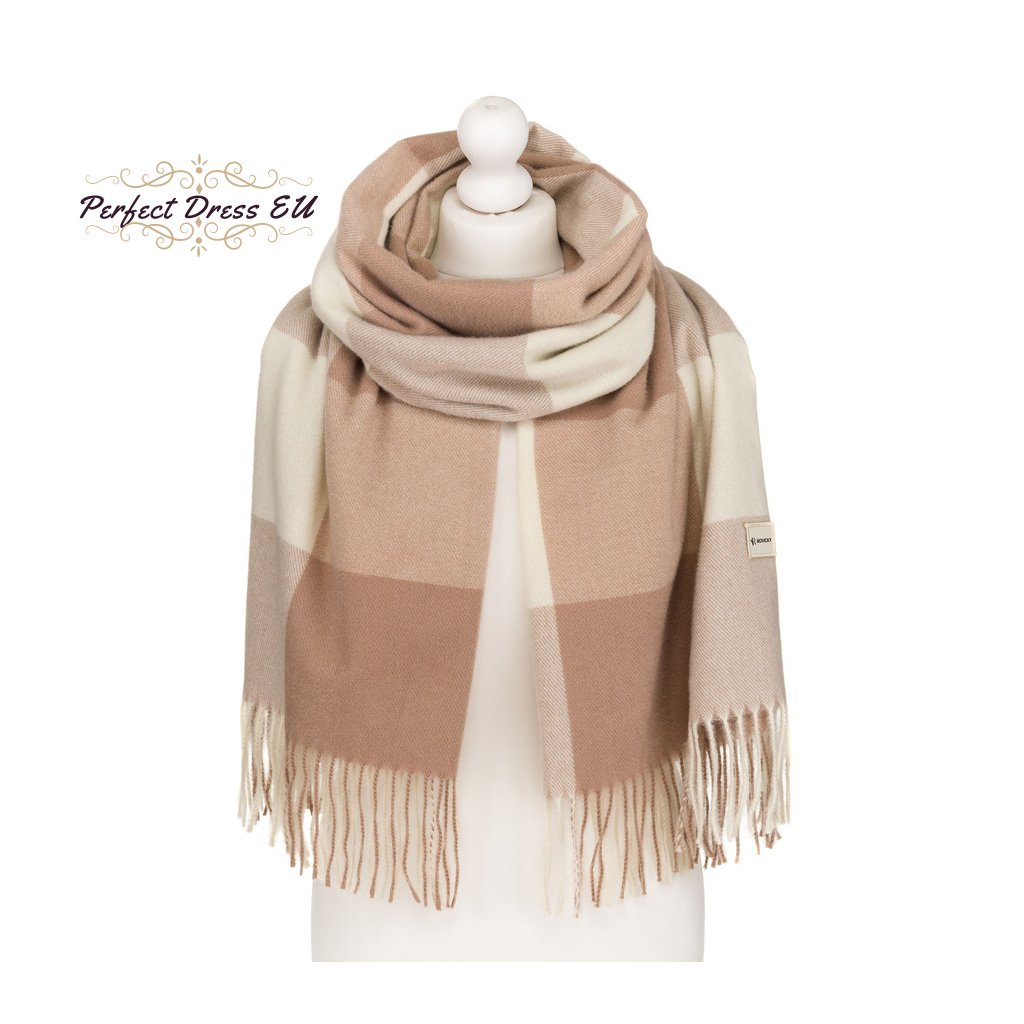 Velký, světle hnědý dámský šátek zdobený třásněmi - Rovicky